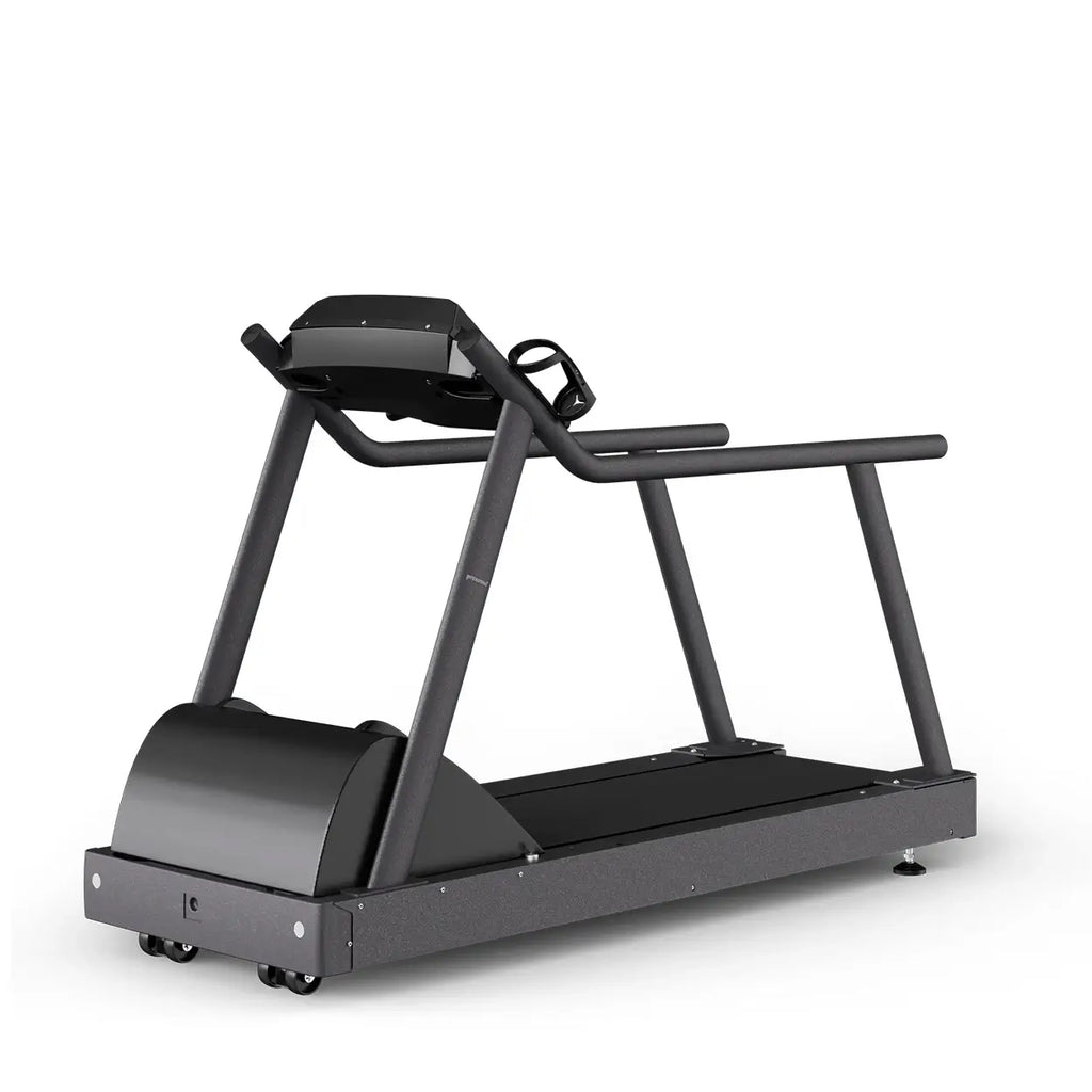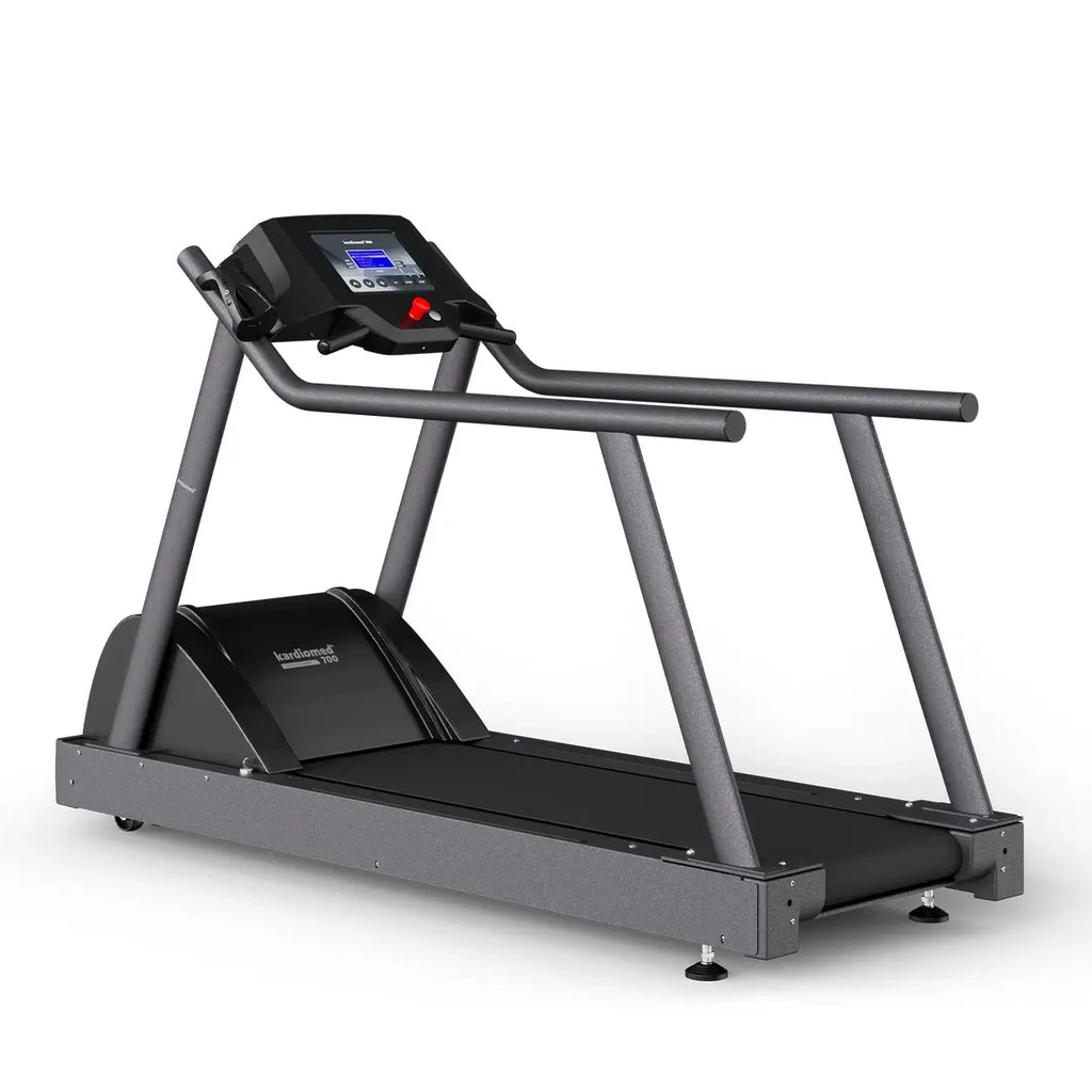 - Das Laufband verfügt über ein durchgehendes Sicherheitsgeländer, einen Not-Stopp und eine Not-Aus-Funktion mit Sicherheitsleine, wodurch es sich sicher für die Therapie einsetzen lässt